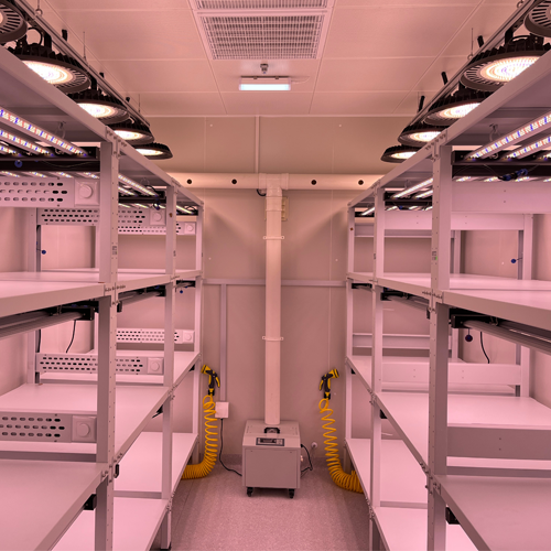 植物生长室通过室内环境模拟,对作物全生育期进行研究,可根据用户栽培作物高度科学合理定制排布植物培养架或顶置光源。